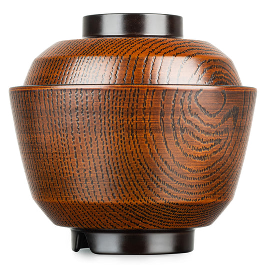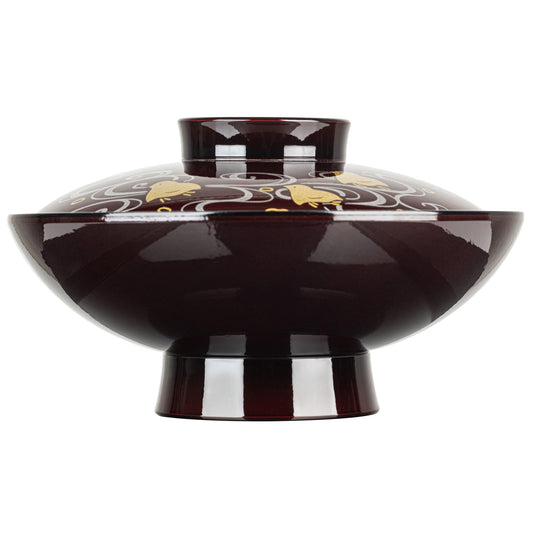 Kiraku Brown Japanese Lacquer Soup Bowl and Lid