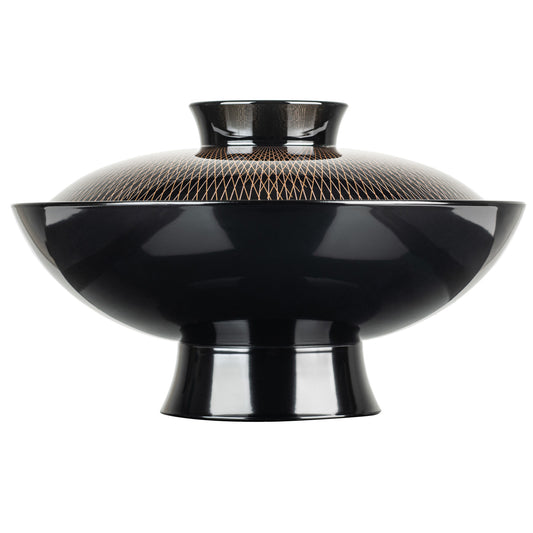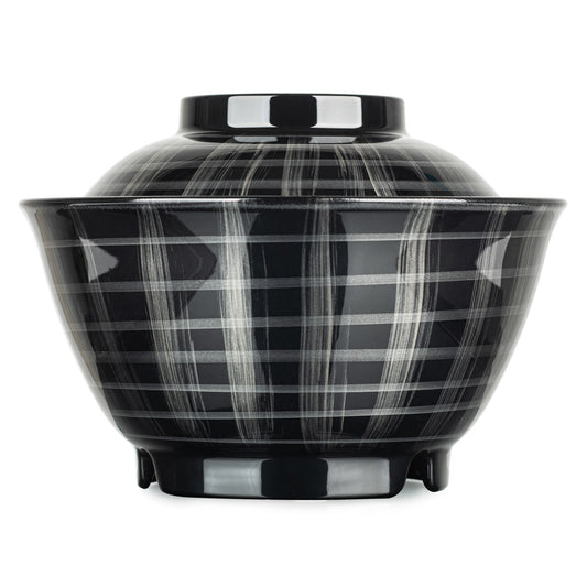 Silver Lattice Japanese Lacquer Large Rice Bowl and Lid