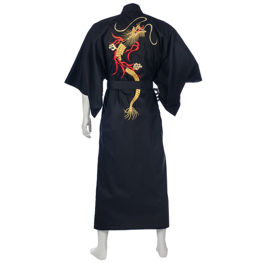 Mens Black Dragon Cotton Japanese Kimono
